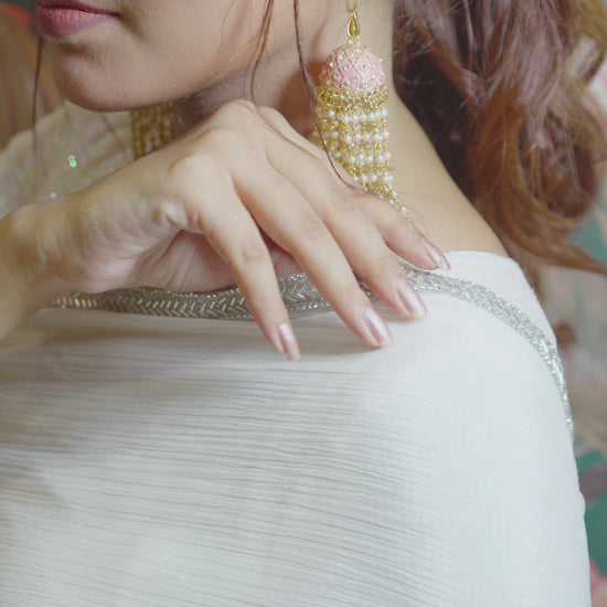 Pre-Stitched White Georgette Saree β easy to wear, with graceful movement